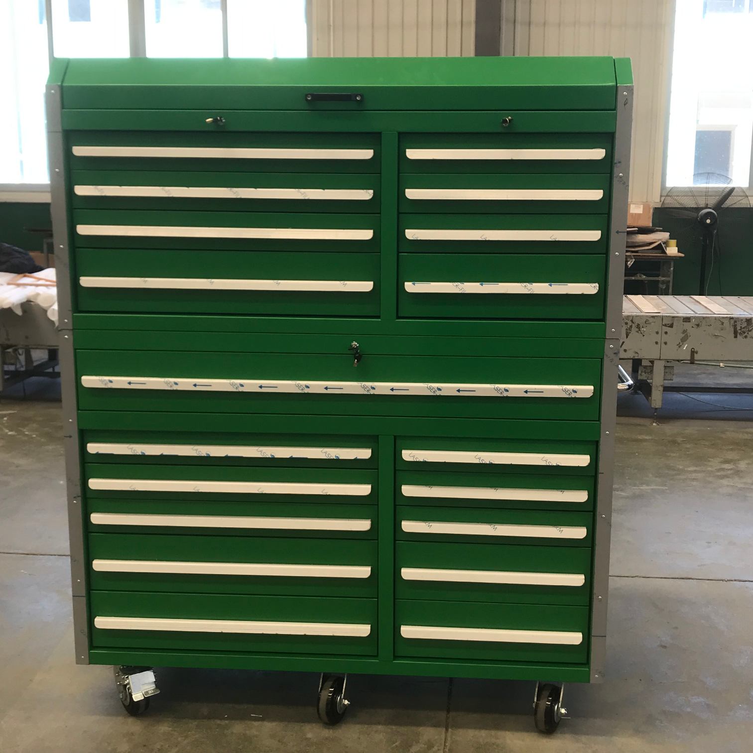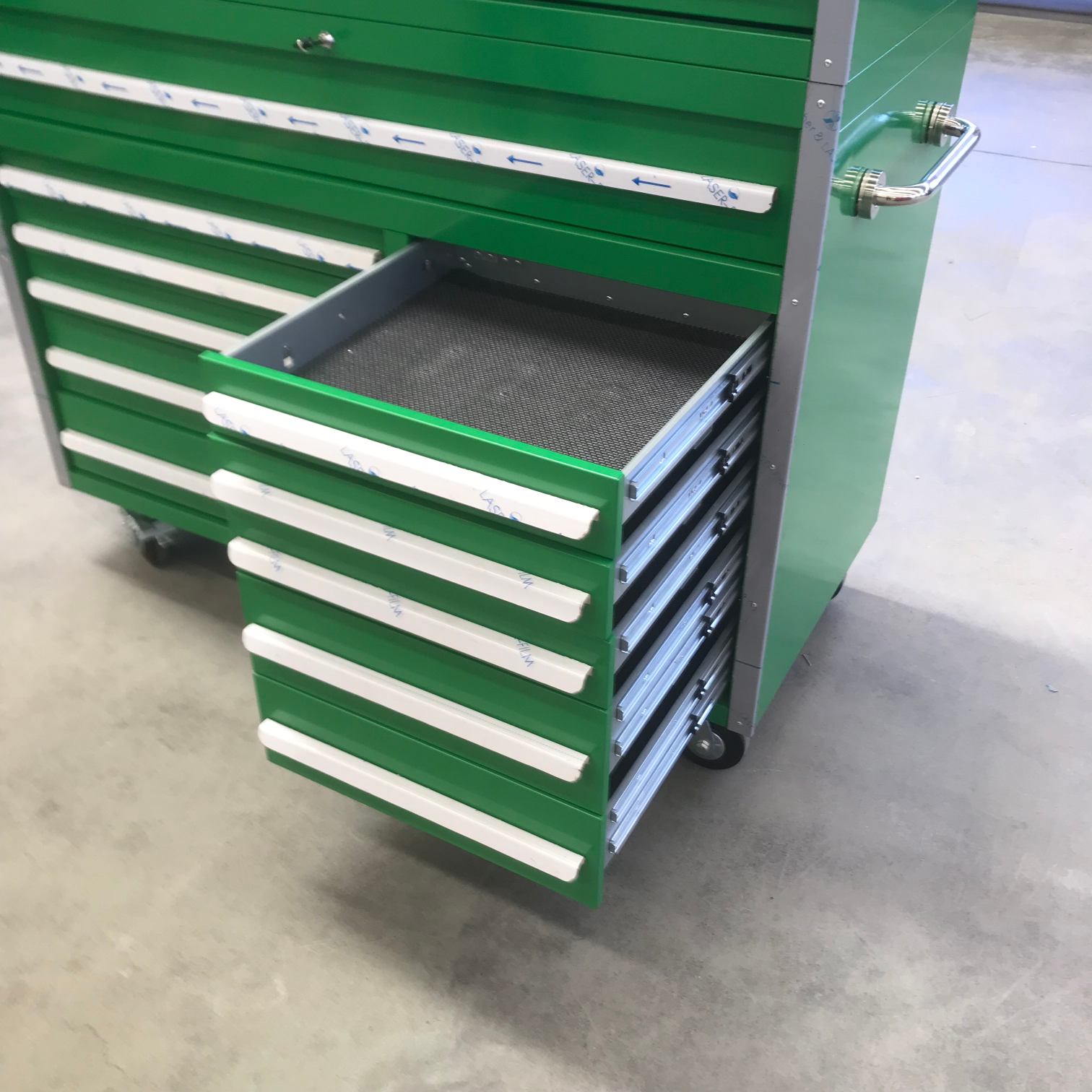 Kabinet penyimpanan rolley yang dilancarkan sejuk digunakan untuk menyimpan alat tangan, alat kuasa, alat ganti mekanikal dan peralatan kecil di perindustrian, bengkel dan rumah. Kapasiti beban tinggi dan reka bentuk mudah alih membolehkan pekerja mengakses item dengan mudah di stesen kerja yang berbeza.