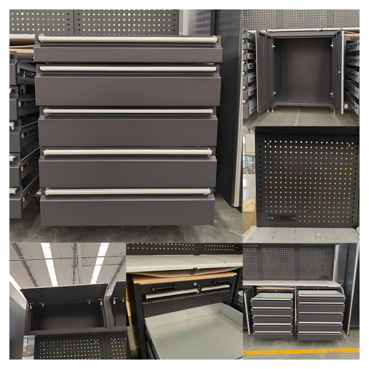 1. Set kabinet garaj keluli yang dilancarkan sejuk menahan penggunaan harian, memegang set alat berat, dan mengekalkan penampilan yang bersih dan profesional untuk pelanggan.