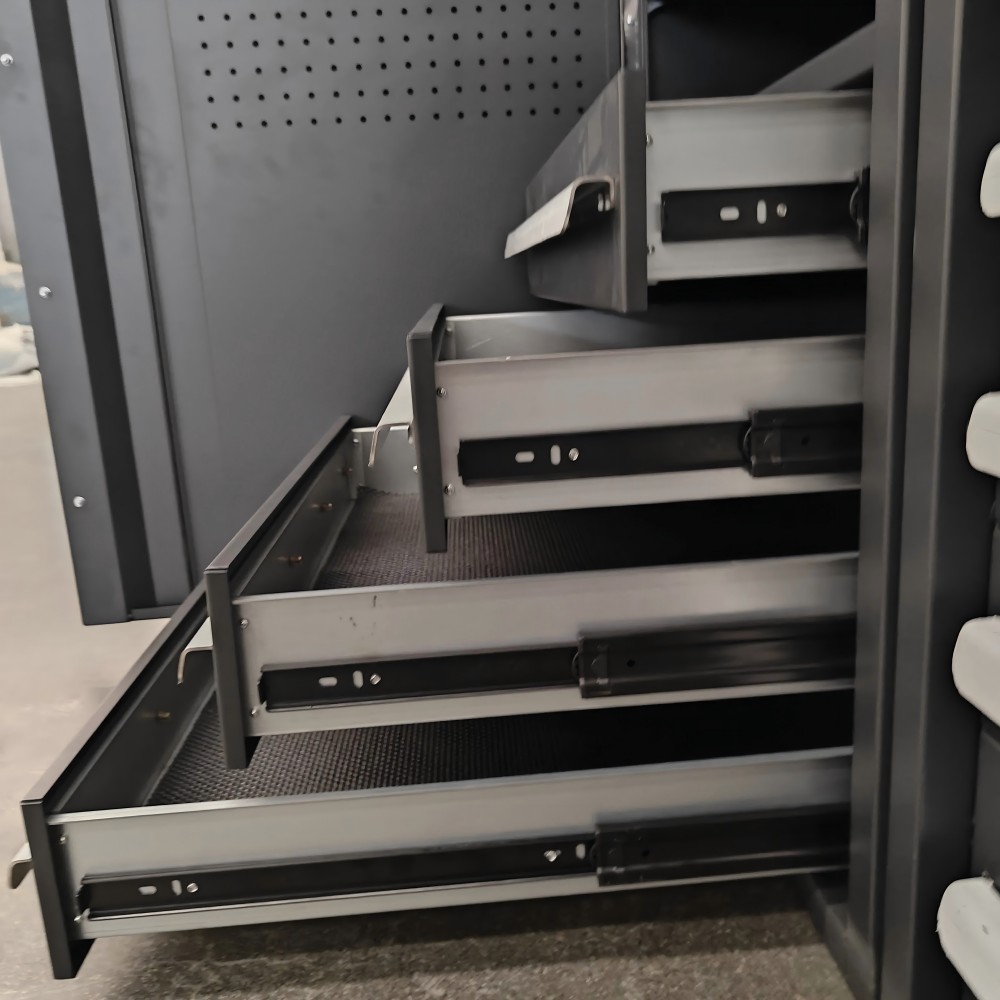 Gabungan Reka Bentuk Modular Fleksibel: Kabinet garaj modular baru menyokong kabinet tunggal dan splicing pelbagai kabinet, dan boleh dipadankan dengan meja kerja, laci, papan gantung dan aksesori lain untuk menyesuaikan diri dengan susun atur ruang yang berbeza. Skalabiliti yang kuat: Kabinet garaj modular baru boleh mencapai pengembangan ruang penyimpanan mendatar atau menegak dengan menambahkan modul untuk memenuhi peningkatan permintaan masa depan. Pemilihan bahan bahan yang kuat dan tahan lama: Kabinet garaj modular baru plat keluli yang dilancarkan sejuk atau bingkai aloi aluminium, permukaannya adalah serbuk bersalut/elektroforetik yang dirawat, tahan karat dan tahan calar, dan boleh menanggung sehingga 80kg/laci. Kestabilan Debu kabinet garaj dan reka bentuk kelembapan-bukti, sesuai untuk persekitaran suhu lembap, berdebu atau tinggi (seperti garaj dan bengkel pembaikan)