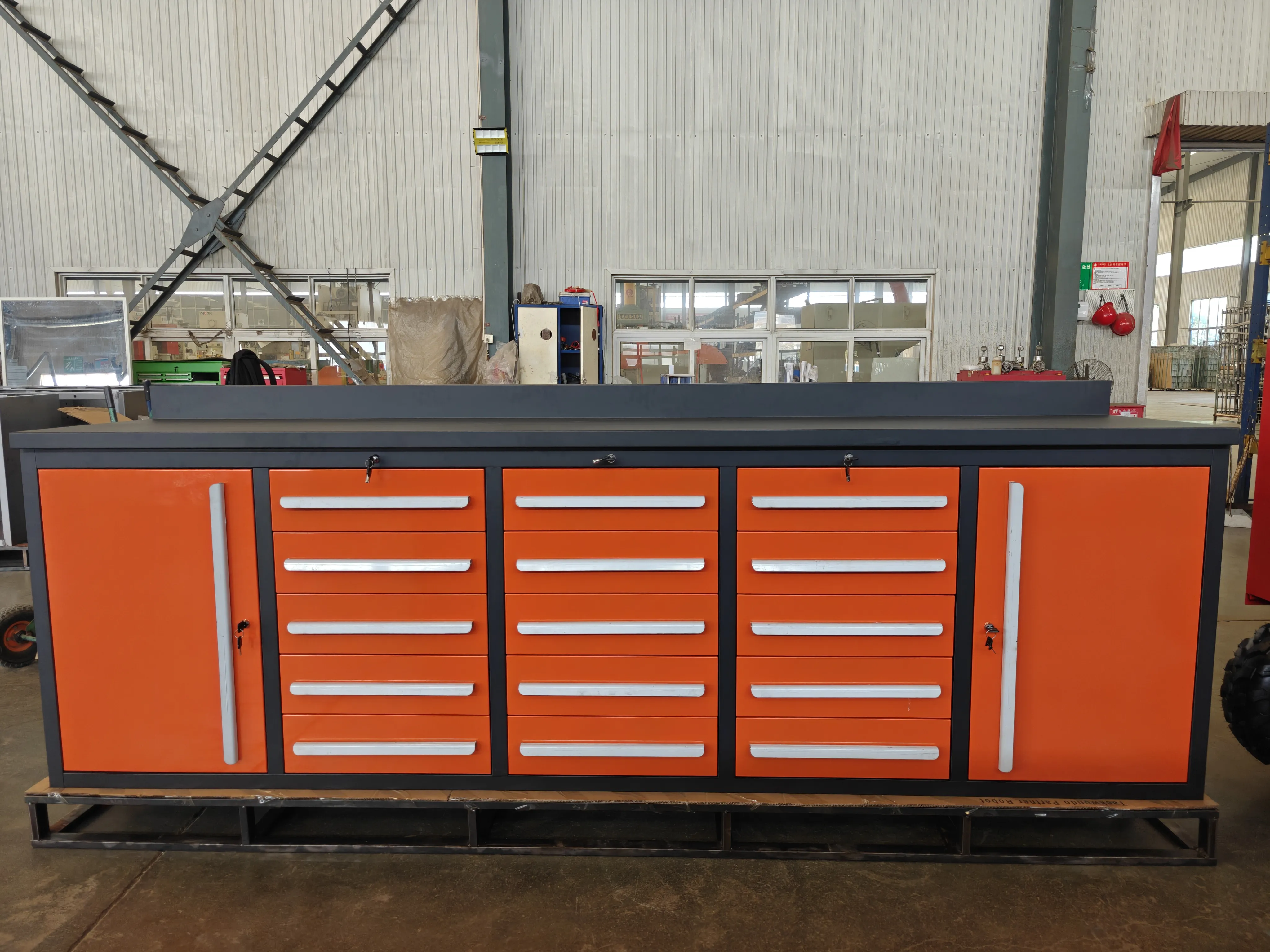 Bahagian atas kabinet boleh dilengkapi dengan getah berjalur hijau, tepi, papan lukisan, laci belakang bergerak, papan gantung lubang persegi atau papan gantung louver untuk mengembangkan fungsi kabinet alat.