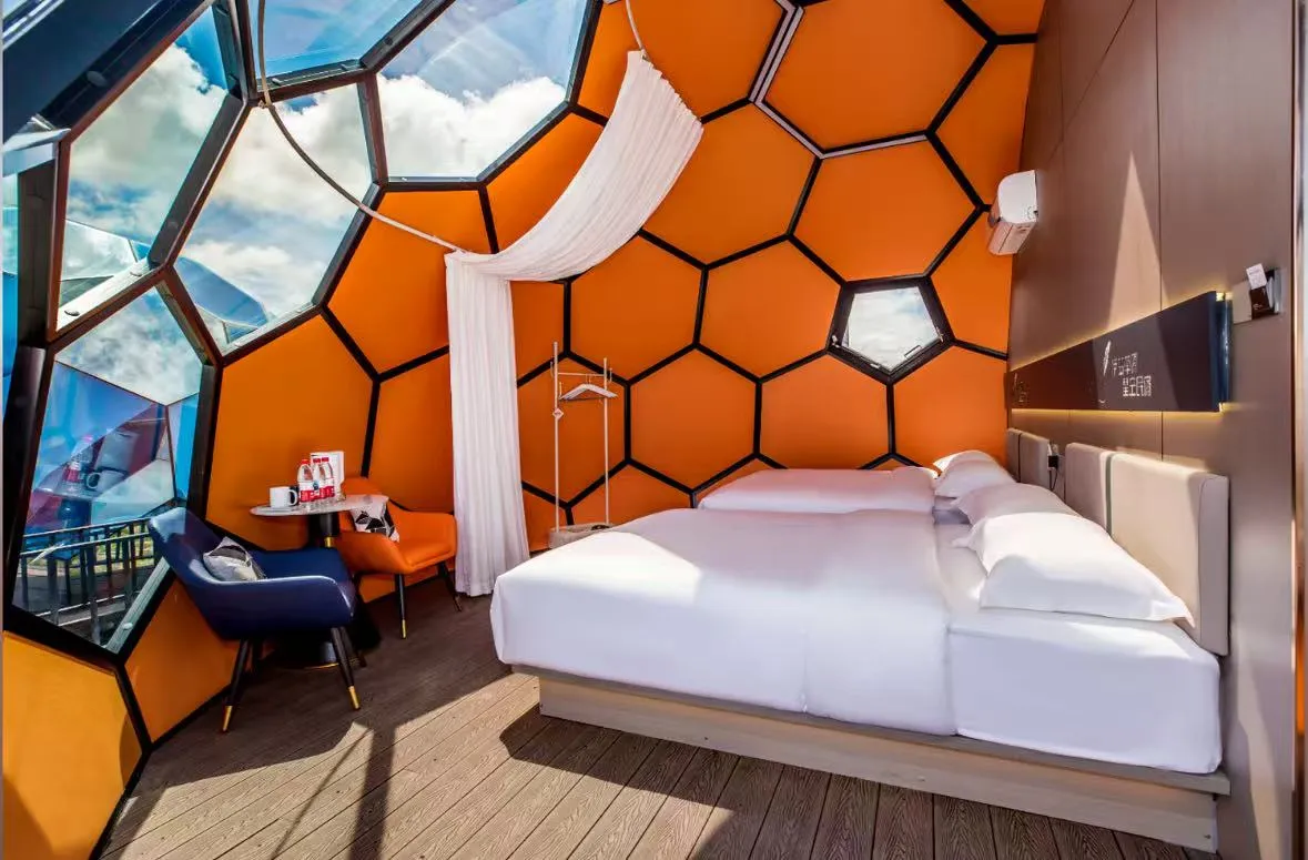 Kemudahan di rumah kapsul ruang bintang ini sangat lengkap. Terdapat katil, tandas, meja, sofa dan bilik mandi yang berasingan di dalam, memberikan anda perasaan rumah. Reka bentuk rumah kapsul ruang atas bintang didasarkan pada idea yang hebat: biarkan orang merasa dekat dengan ruang sambil tetap selesa. Ia mempunyai shell luar pusingan khas yang dapat melindungi orang di dalam dari persekitaran yang keras. Bahagian dalam direka untuk menjadi selesa, dengan ruang yang cukup untuk orang ramai bergerak dengan mudah.