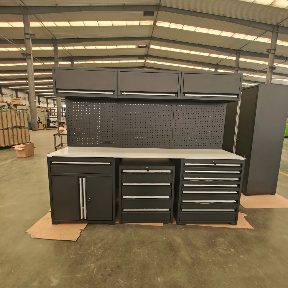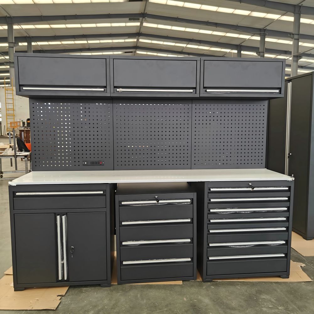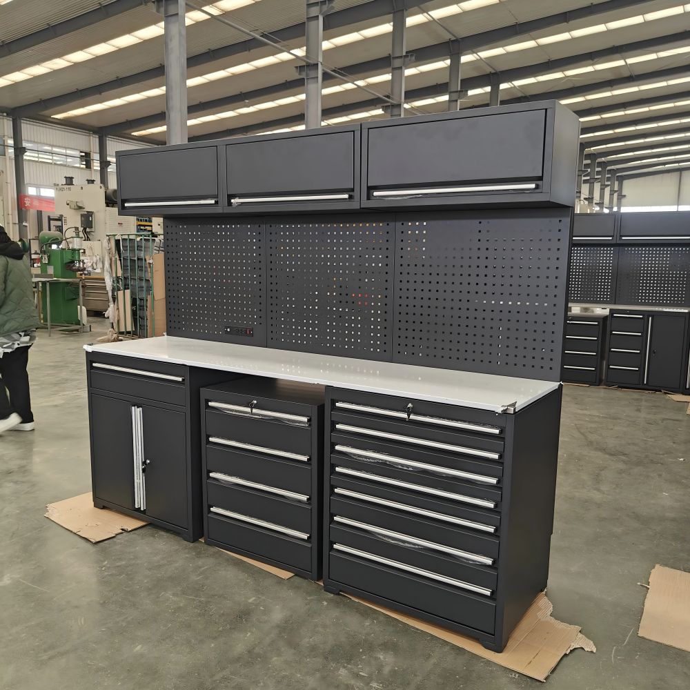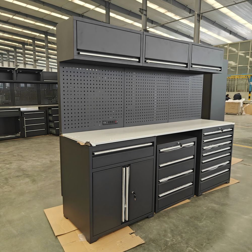 Bengkel Perindustrian/Penggunaan Kilang: Penyelenggaraan Peralatan, Perhimpunan Bahagian, Pemprosesan Logam, Pemeriksaan Kualiti, dan lain-lain. Bingkai keluli karat-bukti menyesuaikan diri dengan persekitaran berminyak; Reka bentuk modular memudahkan pengurusan klasifikasi alat. membuka rak untuk menyimpan alat besar (seperti bicu); Kunci laci untuk melindungi bahagian -bahagian berharga pelanggan. Garage Home/DIY Ridese: Woodworking, kimpalan logam, membuat model, projek pembaikan rumah. saluran kuasa terpelihara untuk memudahkan penggunaan alat kuasa; Jadual yang boleh diperkembangkan untuk memenuhi keperluan pelbagai projek pada masa yang sama.