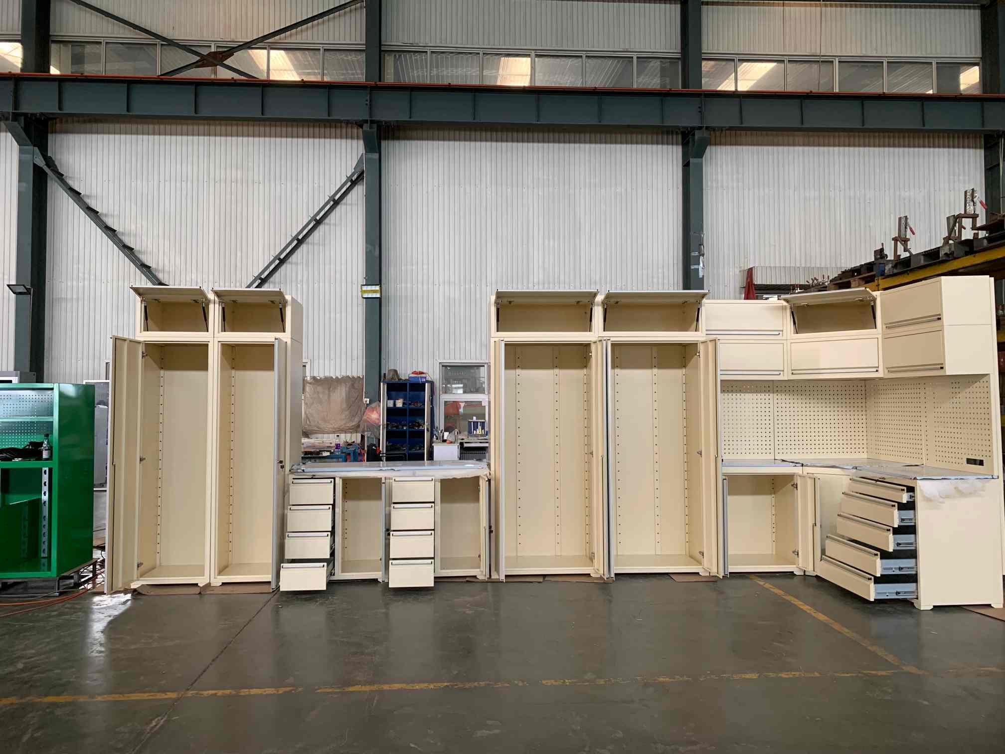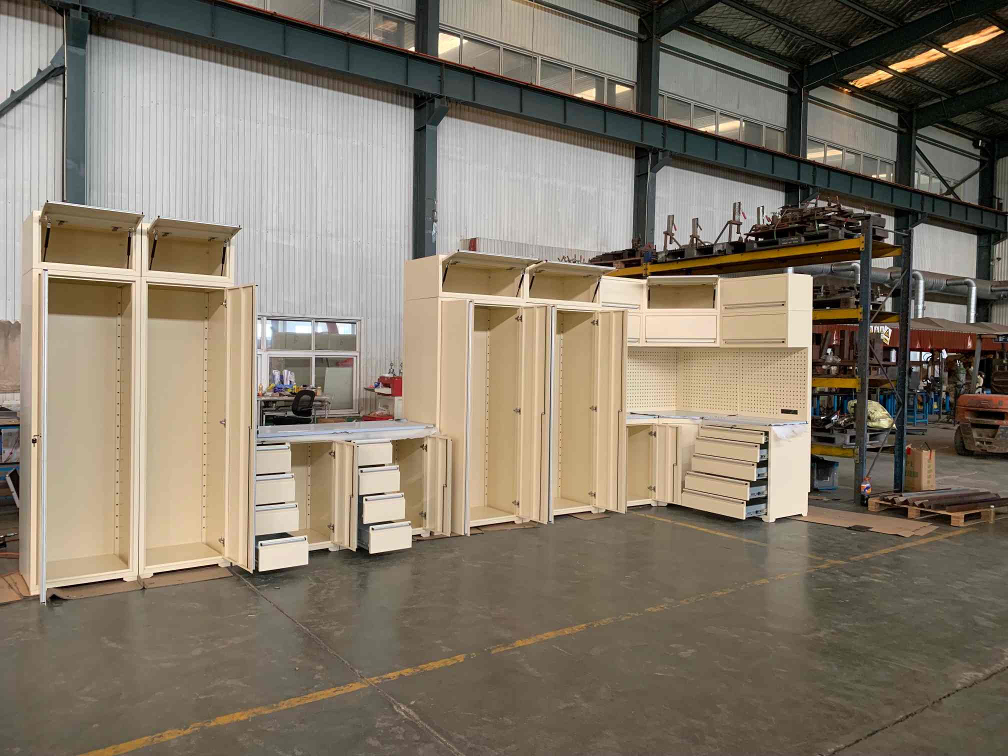 Kabinet alat, alat kerja alat, kabinet garaj, alat pit alat, kotak alat, aksesor dada, rumah kontena dan sebagainya.
